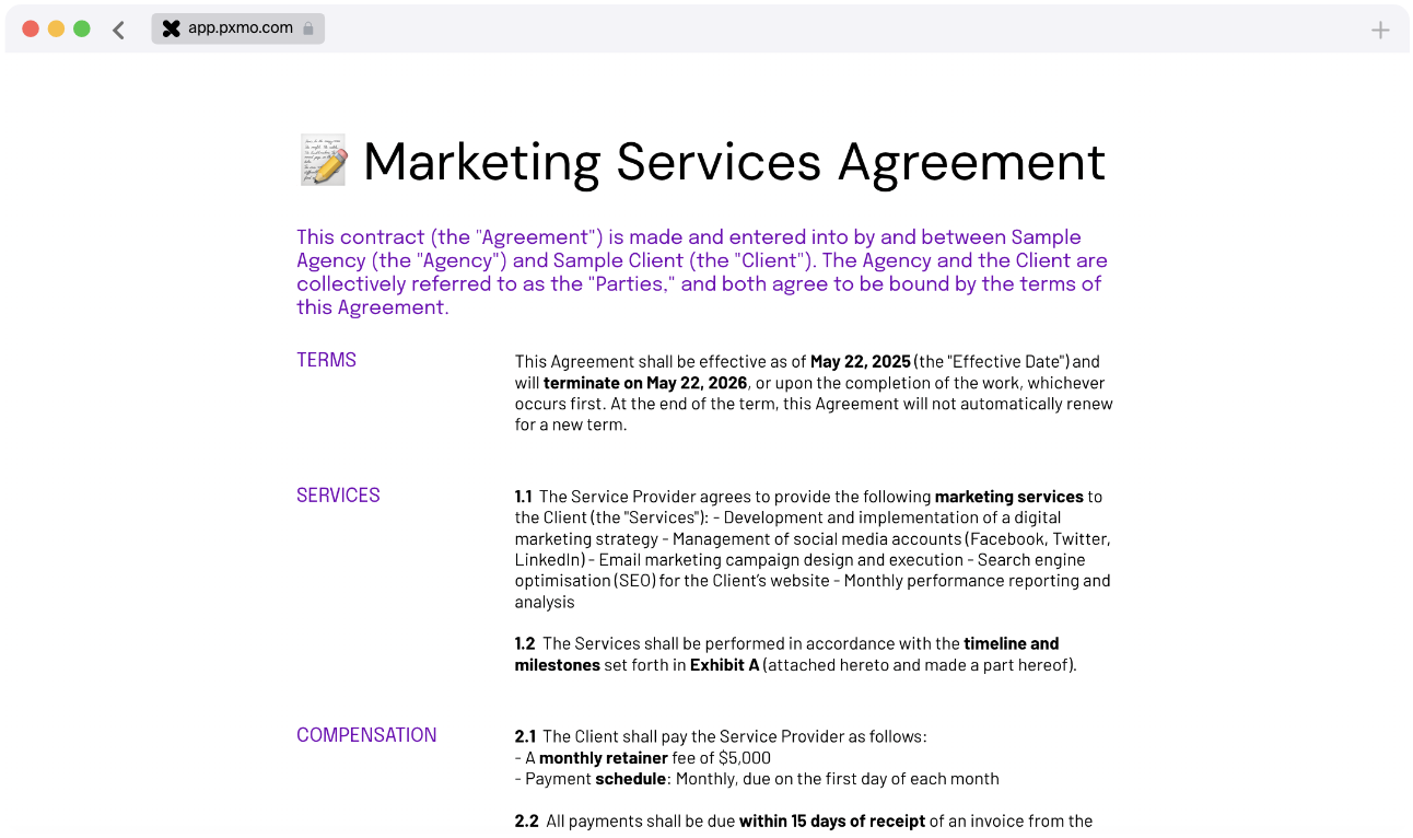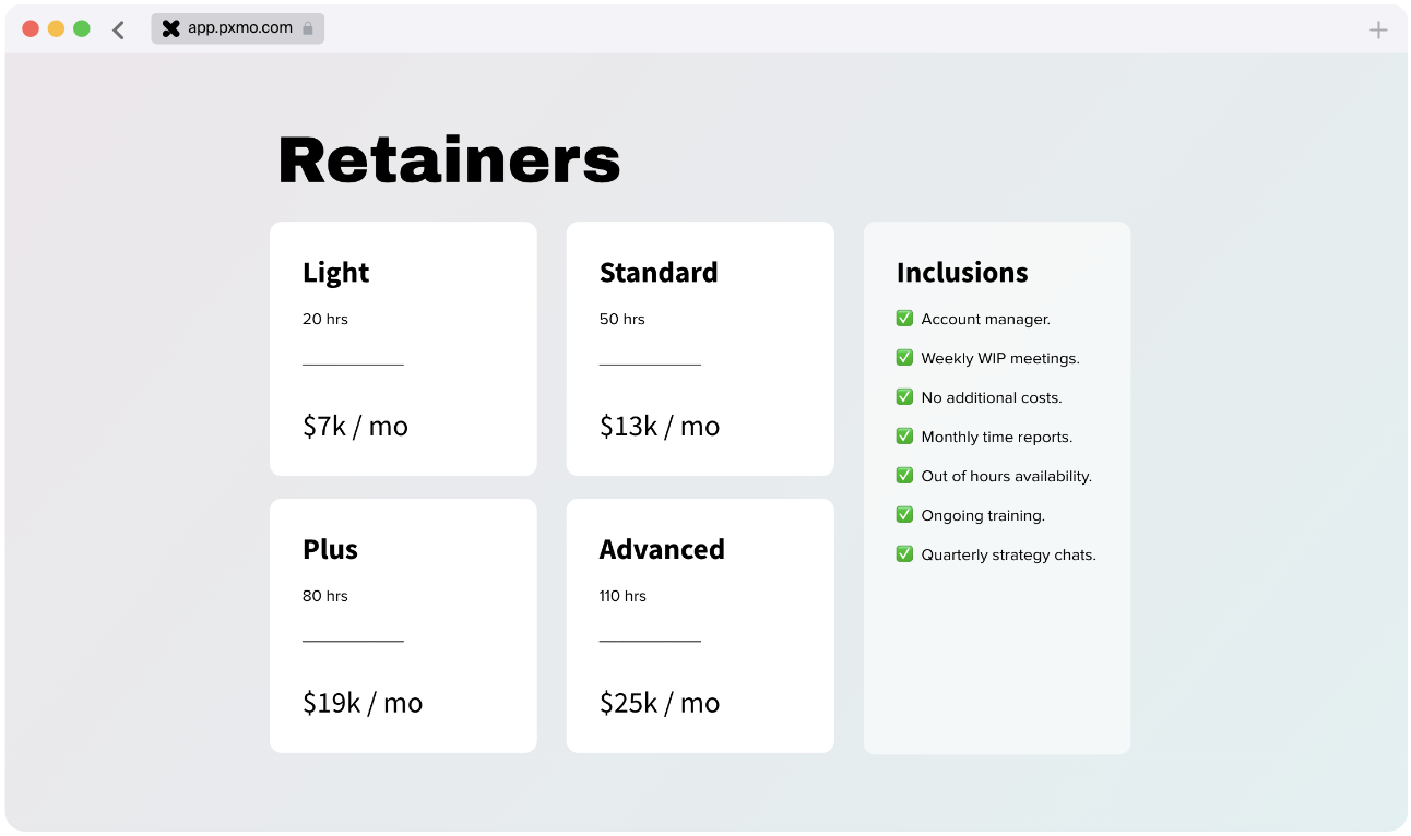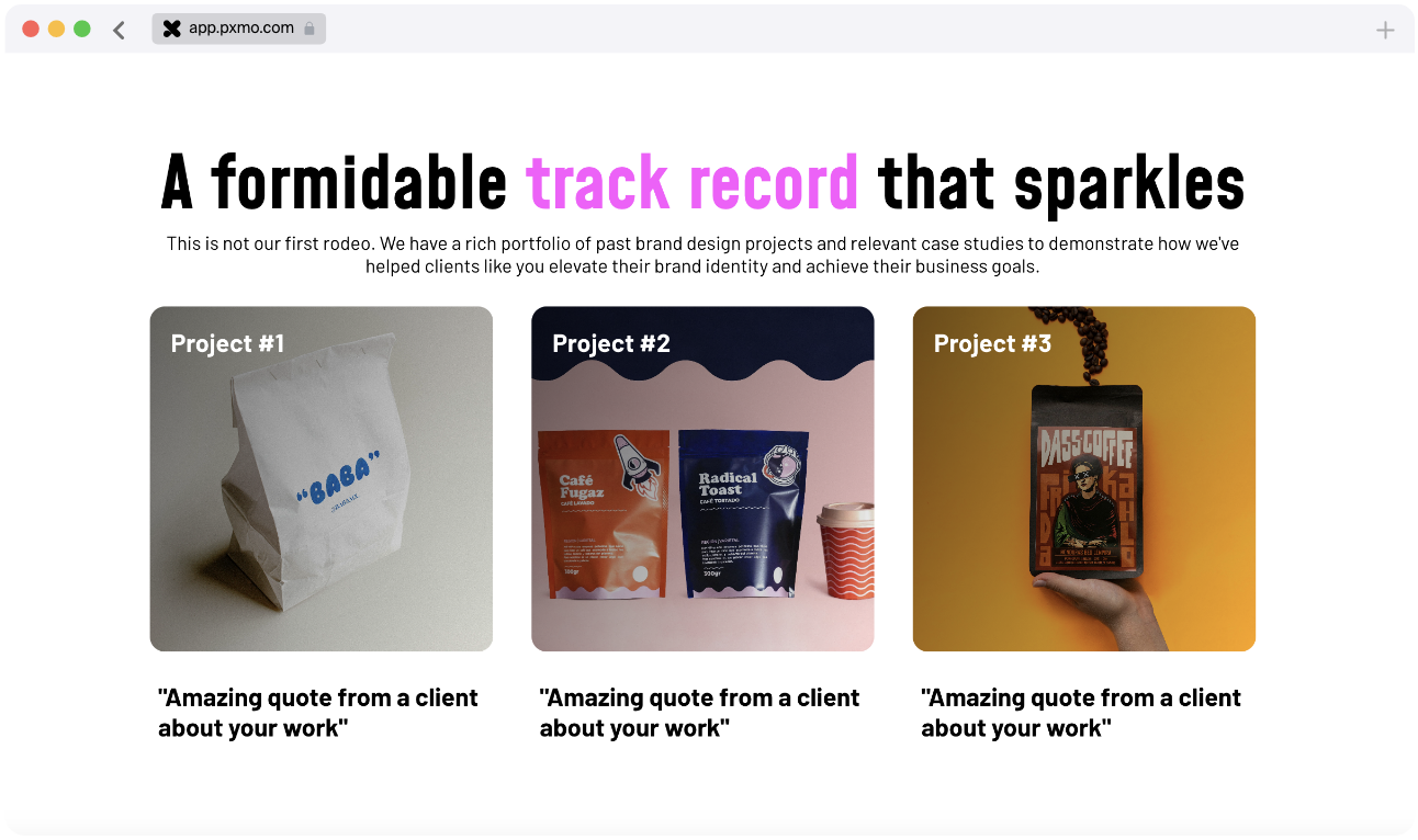 "Before pxmo we spent way too long on lacklustre HR proposals. Now my team loves making proposals and our clients are blown away by what we send them. Our conversion rate is nearly 100% with pxmo."