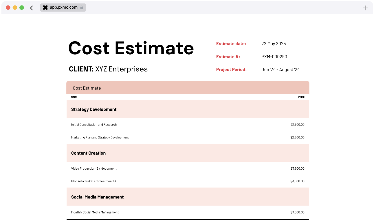 "pxmo has allowed us to create proposals styled exactly how we want - but in less time. The analytics & CRM integrations they added for us have also given us more insight into what our leads are doing with our proposals."